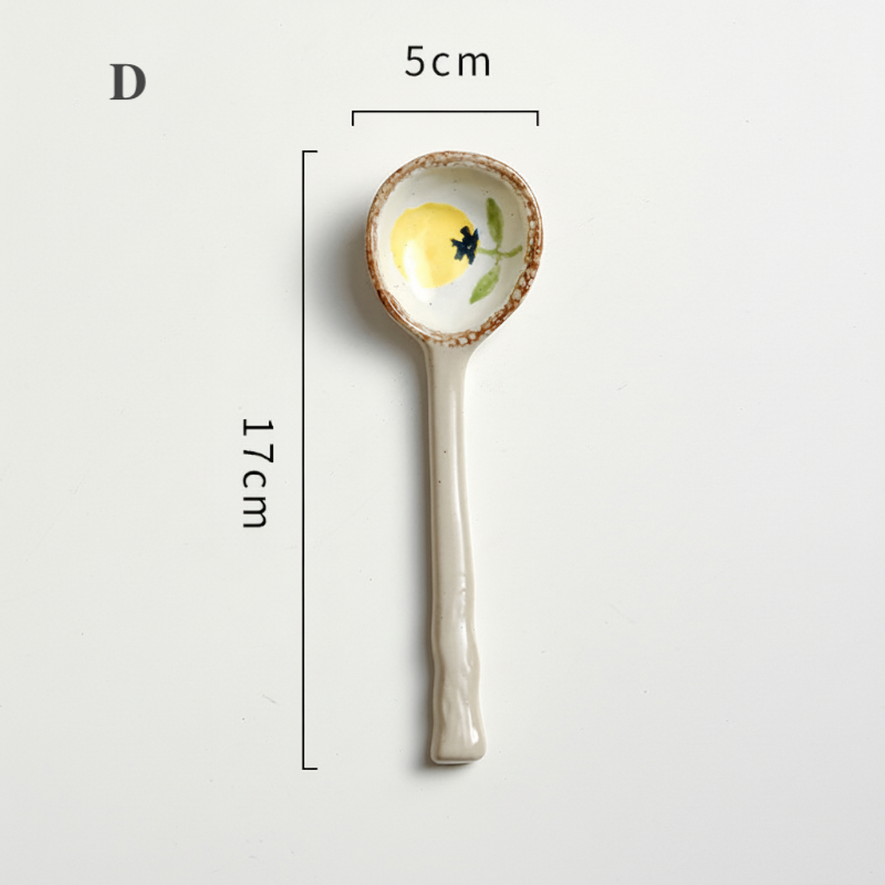 Elevate everyday dining with this beautifully crafted Japanese-style ceramic soup spoon. Designed with a long handle and soft organic curves, each spoon features hand-painted details that bring warmth, charm, and artisanal character to your table—perfect for soups, broths, rice dishes, and desserts.