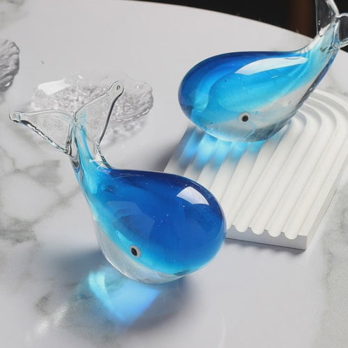 Bring a touch of ocean serenity and artistic elegance into your space with this luminous glass whale figurine. Handcrafted with layered blue glass tones and a soft glowing effect, this decorative piece captures the beauty, movement, and calm of marine life in a refined artistic form.